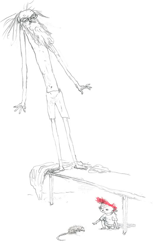 Лисе поднялась на цыпочки и заглянула через забор. Там внизу стоял маленький мальчик с ярко-рыжими волосами. Не просто рыжими, а очень рыжими. И не просто маленький, а очень маленький. Личико было маленьким, с двумя крохотными глазками и торчащим между ними маленьким носиком. Большими на лице были только веснушки.
