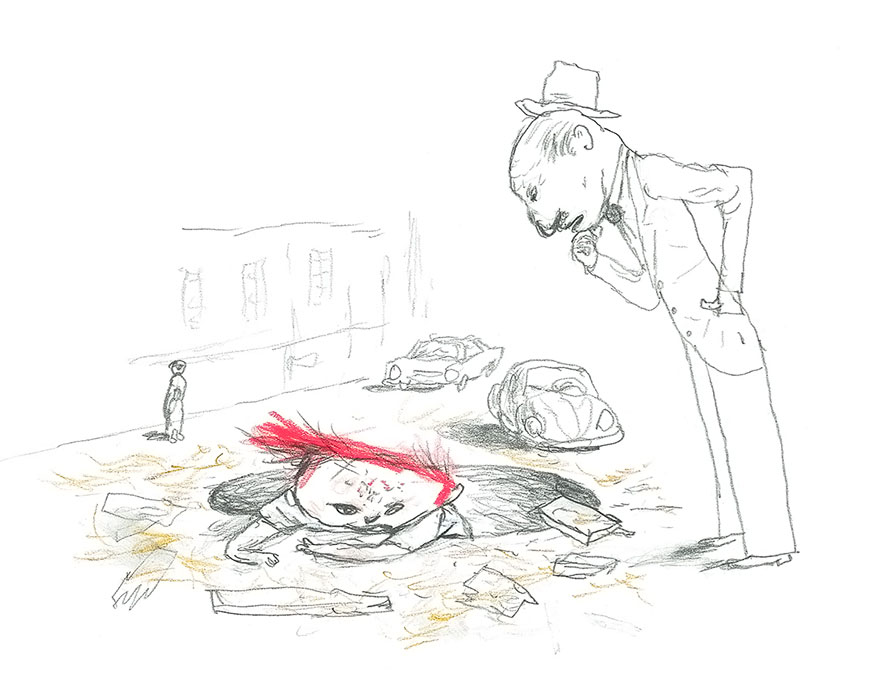Булле промчался между ног у грузчиков, переносивших мебель, и вошел в новый дом. И тут на картонной коробке в коридоре увидел свою трубу. Вздохнув с облегчением, он схватил ее. Булле, его сестра и мама приехали на первом фургоне накануне вечером, и он переживал, захватят ли коробку с его трубой.