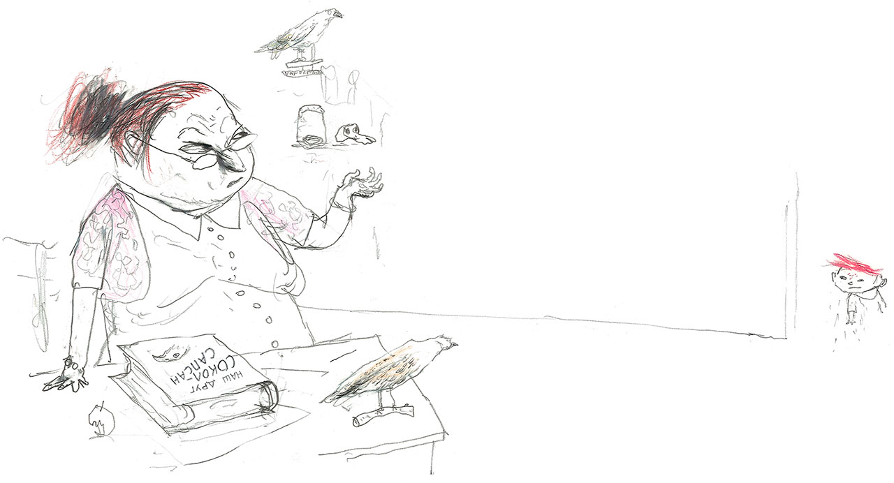 — Как, ты не видела слоновых улиток? — воскликнул Булле. — Посмотри в окно. Их там навалом на лужайке. Толстые жуткие звери. Если сжать их между двумя книгами, из них начинает вытекать желто-зеленая слизь, как из носа у людей, заболевших пекинским гриппом третьей степени. Нет ничего хуже соплюшек от пекинского гриппа третьей степени. Если, конечно, не считать слизи от слоновых улиток.
