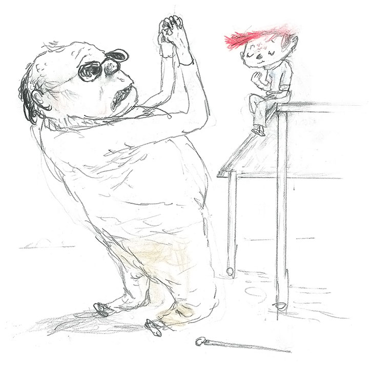 — Ты никогда не будешь играть ни в каком оркестре! — крикнула ему Ева. — Кому нужен трубач такого роста, что его не видно из-за большого барабана? Ни в одном оркестре нет такой маленькой униформы!