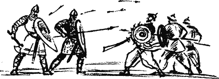 На поляне встретились они с древлянским войском. Святослав метнул копье, которое держал наготове. Брошенное слабой детской рукою, оно пролетело между конскими ушами и упало тут же, у ног коня.