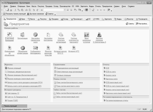 Рис. 1.19. Главное окно «1С Бухгалтерия 8»
