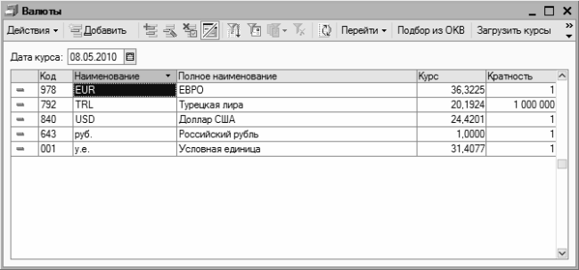Также выбор объектов для просмотра либо редактирования может осуществляться в окнах списка. Характерный пример – работа с документами: при активизации соответствующей команды на экране открывается окно списка (рис. 1.21), в котором осуществляется выбор документа для дальнейшей работы. Отметим, что в начале эксплуатации программы с вновь созданной пустой информационной базой все интерфейсы списка будут пустыми, т. е. в них не будет ни одной позиции.
