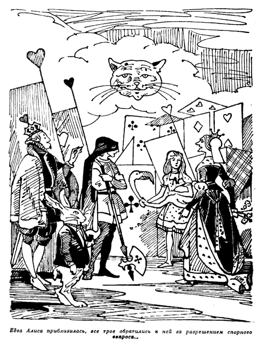 Какая удивительная картина! В ней художник воплотил свою уверенность: все несправедливое, нелепое должно будет уступить место тому, во что с такой непоколебимой убежденностью верит Алиса, — естественному, логическому, разумному.