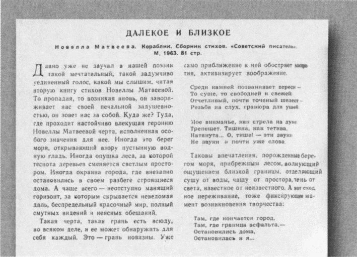 К сожалению, мы и сами распространяем тот же миф о собственной ущербности, «недотянутости» (ну, конечно же!) до мировых стандартов: «…родственная русской литературе черта — жертвовать законченностью формы, если в ней не умещается „дело“» (Петр Палиевский). Новелла Матвеева с блеском доказывает (практически и теоретически!), что это не так: