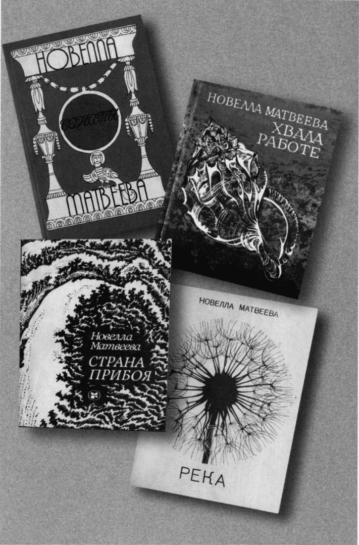 Поэтические сборники Новеллы Матвеевой: «Река» (1978), «Страна прибоя» (1983), «Хвала работе» (1987), «Сонеты» (1998).