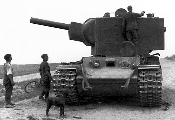 Танк КВ-2 из состава 27-го танкового полка 14-й танковой дивизии, оставленный экипажем из-за поломки. Этот же танк изображён на фото на стр. 102–104 (ЯМ).