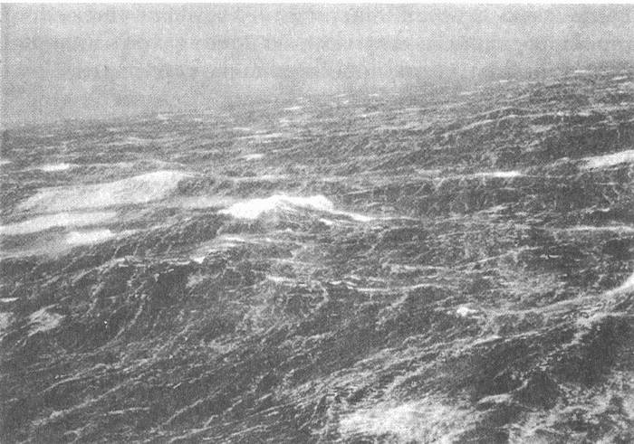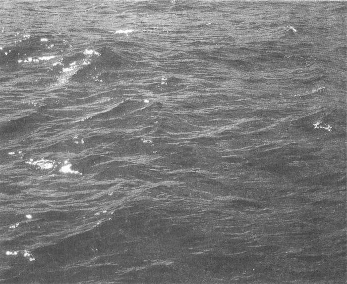 Волны образуются постоянно, на всей протяженности мирового океана, однако удобнее всего наблюдать их зарождение в тихой, спокойной обстановке, скажем, в небольшой морской акватории без всяких волнений. На самом деле та кой акватории не существует, но мы ее вообразим. Ближе всего к ней «конские широты» — штилевая полоса Атлантического океана между 30 и 33 градусами северной широты в Северном и Южном полушариях и «унылые широты» — экваториальная штилевая полоса, расположенная по обе стороны от экватора — 5-10 градусов на север и на юг. Обе эти области отличаются слабыми, неустойчивыми ветрами. Так как именно ветер образует волны, порой в этих безветренных широтах волнение практически отсутствует. Однако у любого океана, даже в самую безветренную погоду, зеркально гладкая поверхность все же волнуется — под влиянием едва ощутимых отголосков далеких штормовых волн.