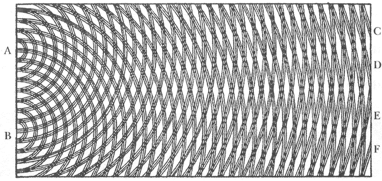 Такое странное поведение вступивших в пору зрелости волн объясняется наложением волн с примерно одинаковой длиной. Более длинные и быстрые волны входят в ту же воду, в которой находятся волны чуть более короткие и медлительные, при этом их гребни и подошвы совмещаются и вновь расходятся так, как показано на схеме на странице 37.