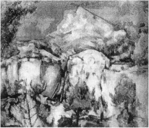 15. Гора Сент-Виктуар, увиденная со стороны Бибемю. Дориваль указывает, что Сезанн на склоне лет особенно любил заброшенные, пустынные места вроде забытой, полузаросшей каменоломни Бибемю. Там он обосновался на какое-то время, пока за несколько лет до смерти не оборудовал мастерскую на окраине Экс-ан-Прованса. Все его пейзажи периода Бибемю, по мнению Дориваля, отличаются «космическим характером геологической трагедии». Bernard Dorival. «Cezanne», 1948 (Бернар Дориваль. «Сезанн»),