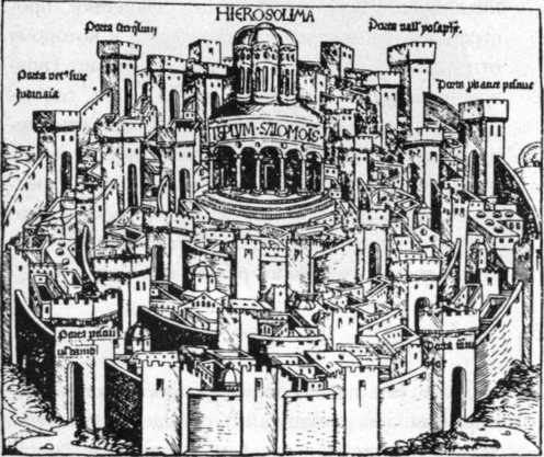 стороны, была гора, которая служила основанием храма Соломона, — на ее вершине как раз и находился жертвенник; эта же самая гора позднее считалась местом, откуда вознесся на небо Мухаммед (Магомет). С другой стороны, была Голгофа и храм Гроба Господня, где