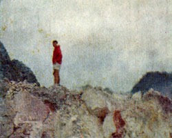 Нашему хорошему настроению вскоре приходит конец: ни один из носильщиков не хочет идти дальше в гору. Никак не можем договориться. Чаще всего они повторяют слова «дьявол» и «огонь». По-видимому, не знают, как объяснить по-английски, что им страшно. После долгих уговоров наш одиннадцатилетний приятель и Габриэль соглашаются сопровождать пас к вершине. Остальные уходят, но минут через пять возвращаются и остаются в лагере.