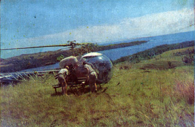 Из шести пассажиров, которых должен был забрать самолет, четверо напоминали мне либо чиновников, либо торговцев. Их одежда была скроена будто по журналу мод старой колониальной Англии: белые бриджи с манжетами под коленом, белые гольфы, белая рубашка с длинными рукавами и с пристегивающимся воротничком. Под рубашкой иногда просвечивает майка. И обязательно галстук, полуботинки и трубке — все в темных топах. Четверо джентльменов были дружелюбны и веселы. Часы ожидания они провели в ближайшем от аэропорта отеле «Гэйтвэй», где кроме местного сравнительно неплохого пива можно получить и австралийское, и голландское, и датское. Новозеландский геолог Ян Смит и я дополняли шестерку пассажиров. До аэродрома нас провожали очень симпатичный итальянец Гвидо Чифалли и моя жена.
