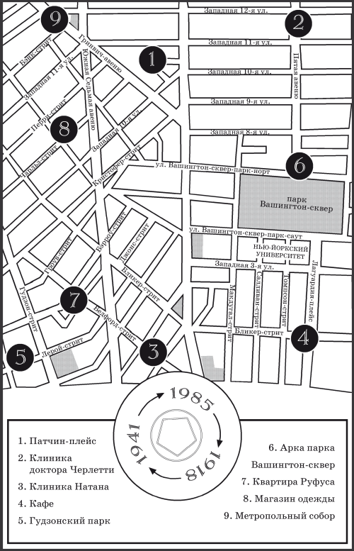 Сделаю подсказку: встаньте на Десятой Западной, там, где она встречается с Шестой авеню, в тени библиотеки Джефферсон-Маркет с ее высокой башней. Поворачивайтесь вокруг своей оси, пока не увидите железные ворота (их так часто не замечают!), и загляните за решетку. Перед вами предстанет улица длиной в полквартала, обсаженная тонкими кленами, – тупичок в полдюжины дверей. Совсем не шикарное место: изогнутый проулок с трехэтажными кирпичными домами, построенными давным-давно для официантов-басков из «Бреворт-хауса» [1]. В самом конце, справа, за последним деревом, будет наша дверь. Вытрите ноги о старую щетку для обуви, замурованную в бетон. Пройдите через зеленую дверь: если повернуть налево, можно постучаться к моей тете Рут, если подняться по лестнице – ко мне. А если вы остановитесь на повороте лестницы, то увидите отметки роста двоих детей: мою, сделанную жирным красным карандашом, и другую, синюю, гораздо выше – моего брата-близнеца Феликса.