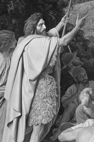 Вот Иоанн Креститель, Предтеча, проповедник в овчине и грубом плаще, вздымающий крест так, что он оказывается прямо в геометрическом центре полотна. «В те дни приходит Иоанн Креститель и проповедует в пустыне Иудейской и говорит: покайтесь, ибо приблизилось Царство Небесное… Тогда Иерусалим и вся Иудея, и вся окрестность иорданская выходили к нему и крестились от него в Иордане, исповедуя грехи свои… Я крещу вас в воде в покаяние, но идущий за мною сильнее меня, я недостоин понесть обувь Его. Он будет крестить вас Духом Святым и огнем…» Кажется, он говорит это не только присутствующим в картине, но и неисчислимым народам, проходящим по земле, всем нам.