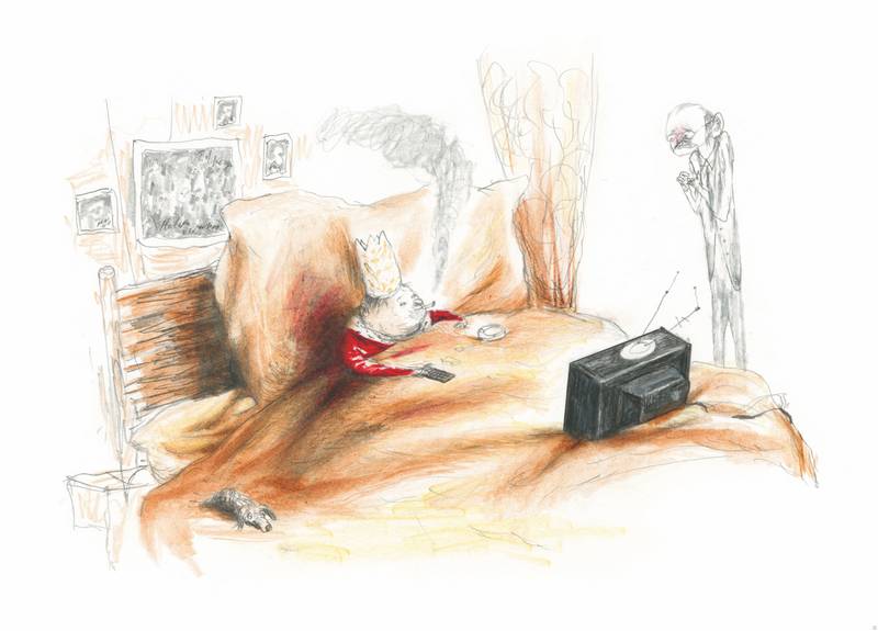 Было девять часов, и король, как обычно, лежал в постели и смотрел по телевизору спортивные новости. Ведущий поправил на носу очки и сообщил, что, по слухам, владелец «Челчестер Сити» Максимус Рублёв попытается перед финалом Кубка купить того самого Ибранальдовеса, самого дорогостоящего, самого лучшего и самого избалованного футболиста в мире. Но только денег у него на это, конечно, не хватит. Правда, Рублёв — самый богатый человек на свете, богаче, чем Улав Крон, Стейнрик Хаген и Скиллинге Рёкке, вместе взятые. Рублёв владеет Финляндией, Новой Зеландией, восемнадцатью фабриками с толстыми столбами дыма и тощими детьми-работниками, двадцатью четырьмя политиками, стадионом «Челчестер», четырьмя лицензиями на такси и одним украденным велосипедом с двадцатью четырьмя скоростями. Но это абсолютно бесполезно. Все знают, что ни у кого нет денег, чтобы купить Ибранальдовеса. Последние, кто пытался это сделать, предлагали девятнадцать миллионов фунтов стерлингов, Таджикистан, три авианосца, только что вымытый небоскреб и два сильно подержанных поршневых самолета. Получив отказ, они прибавили Доминиканскую республику, улицу Родхусгата в Осло, три дорожных чека на большую сумму и Землю Королевы Мод[9]. Даже не спросив разрешения у королевы Мод. И услышали громогласное «Нет!».