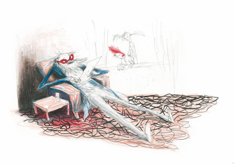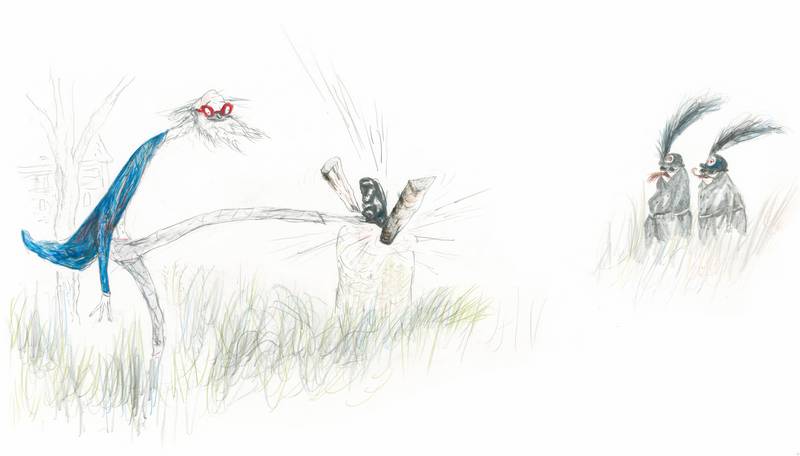 — Рыжие крысиные хвосты и зеленые лягушачьи лапки — это пожалуйста, — говорит Альфи. — Но желтые глаза — это уж ты поищи где-нибудь в джунг…