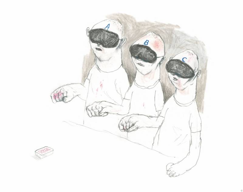 Двое других направляют лучи фонарей туда, где Чарли увидел желтые глаза. Но там ничего нет, лишь дрожащая крыса стоит на задних лапах, прижавшись спиной к стене.