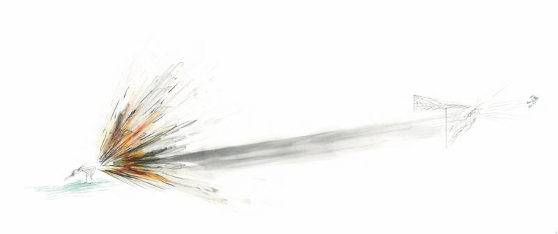 Он заряжает чудище (которое вовсе не чудище, а немецкий ручной пулемет) и начинает палить без остановки. Пламя вырывается из дула пулемета и освещает стены, пули свистят и щелкают по тоннелю.