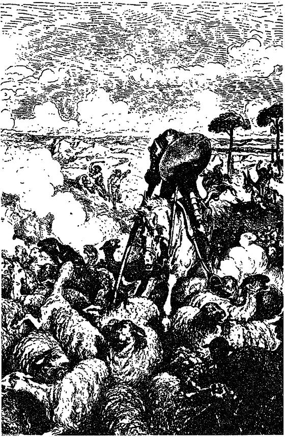 — Сеньйоре рицарю, цей хлопець, якого я караю, — мій наймит. Він стереже тут поблизу мою череду, з якої щодня зникає одна овечка, а коли я докоряю йому недбальством та шахрайством, він каже, що я роблю це через скупість, щоб не платити йому. Богом присягаюся і своєю душею, що він бреше.