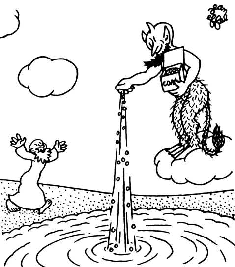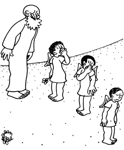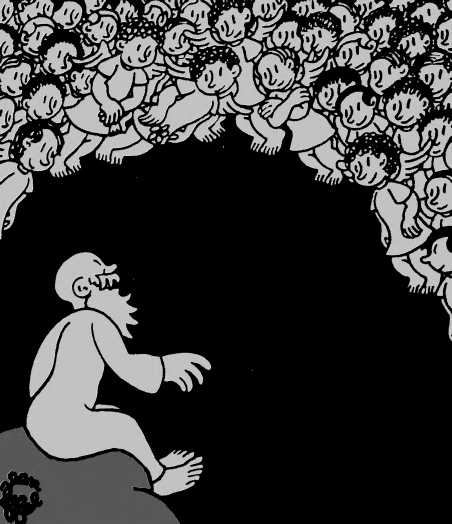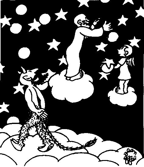 После войны рисунки стали публиковаться специальными подборками в коммунистическом еженедельнике «Ле Леттр Франсэз», издававшемся Луи Арагоном. А когда в папках Жана Эффеля набралось больше двух тысяч рисунков с Богом, Чертом, Адамом, Евой, ангелочками и чертенятами, художник стал готовить их к изданию отдельными выпусками. Для этого надо было расположить их в определенном порядке, разделить на части. Наиболее подходящей основой для классификации оказалась, естественно, Библия. Тщательно изучив первую главу Книги Бытия (в первых выпусках в качестве эпиграфов были даже цитаты из Библии), художник расположил в хронологическом и сюжетном порядке все то, что уже имелось в наличии. От общего количества отпали юморески, по сюжету не связанные с первыми днями творения, хотя в них и фигурируют основные персонажи. Они составили отдельную книгу под названием «Черт и чертовщина» (Париж, 1951). Тематически подходящие рисунки легли в основу произведения, но когда общий план был составлен, выяснилось, что одни сюжеты разработаны очень подробно (например, о воспитании, об отношениях в семье, о женском кокетстве и др.), а для некоторых иллюстраций не хватает. Художник приступил к заполнению пробелов.