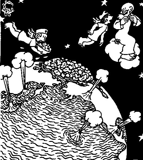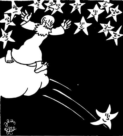 И каждый раз новые авторы, обращаясь к найденной Жаном Эффелем аллегорической форме, старались использовать ее для передачи сегодняшнего, порой даже острозлободневного бытового и общественного содержания. В этом заключалось не только дальнейшее развитие эффелевской трактовки темы «Сотворение мира», но и свидетельство жизненности всей его концепции юмористического творчества. Эффель высмеивал человеческие пороки, отталкиваясь, казалось бы, от чистой морали. «Но, — говорил художник, — от своего века не уйти. Мои улитки и бабочки похожи и на меня, и на двадцатое столетие».
