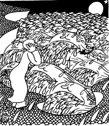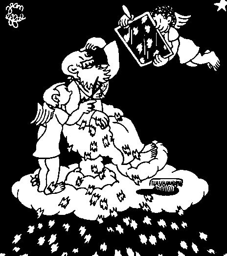 — Мои милые беленькие барашки! Он делает им угольные прививки!