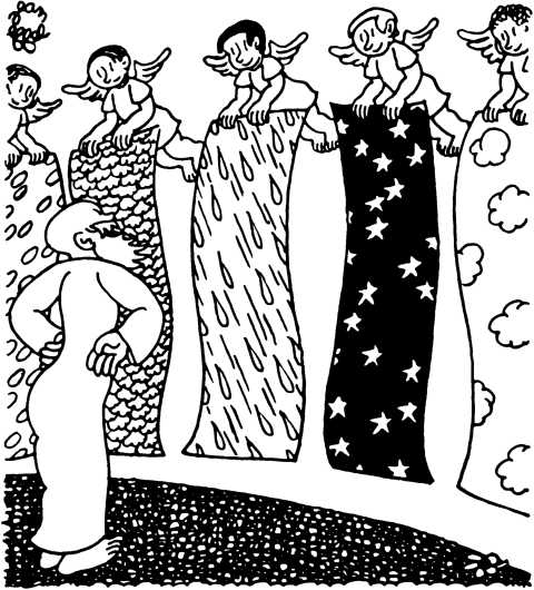 «Сотворение мира» было новой темой, открытой Эффелем в жанре юмористического рисунка. «Когда я начинал, — вспоминал он, — еще можно было смешить и смешили! анекдотическими рисуночками о канибалах и Робинзонах, о тещах и ночных горшках. Я находил это вульгарным. Мне пришла в голову счастливая мысль — я подумал о природе. Я спросил у себя: „Почему хризантема кудрявая? Почему у носорога рог, а у розы — шипы?“ и т. д. И тогда я вспомнил о сотворении мира и открыл неисчерпаемый источник. Через эту тему можно все сказать. Через образы Адама, Евы и Бога — этого поистине фантастического персонажа. Над этим никто никогда не задумывался… исключая, возможно, Микеланджело».