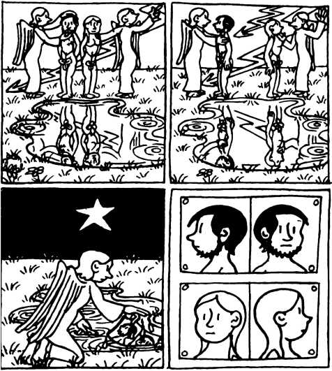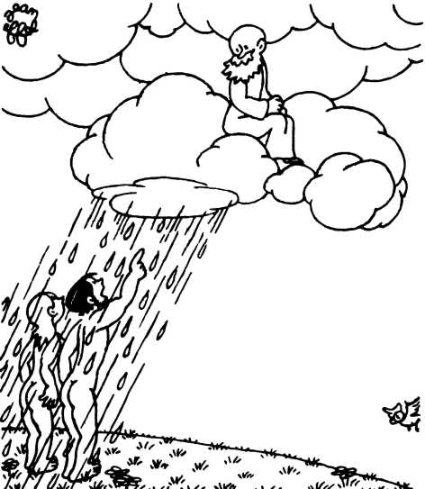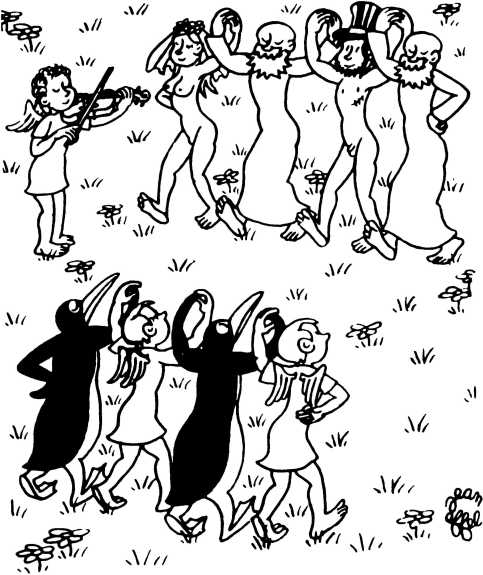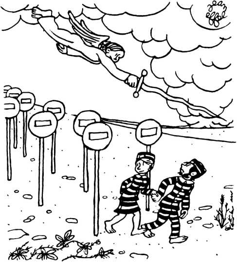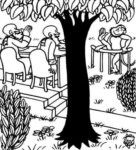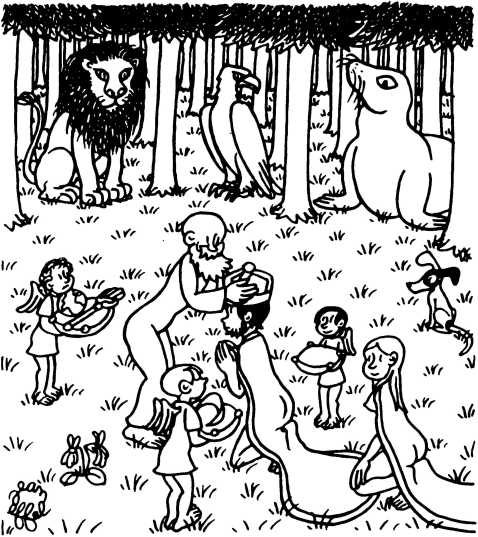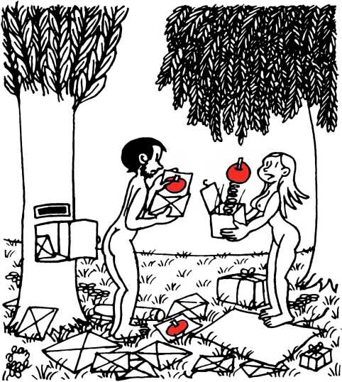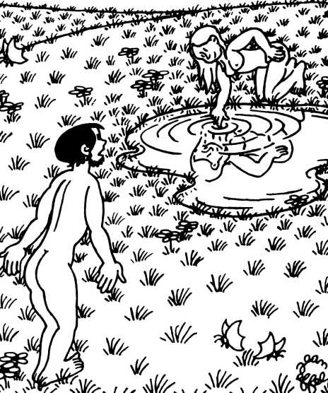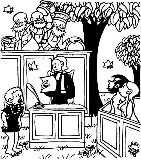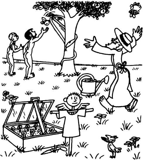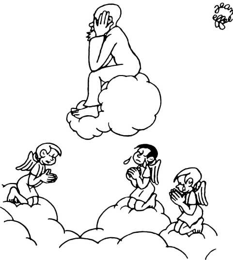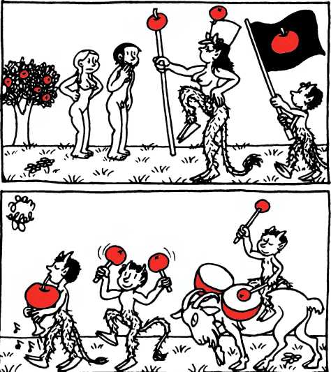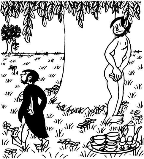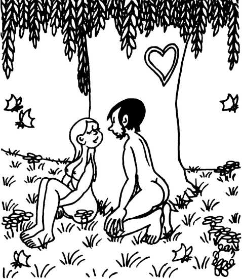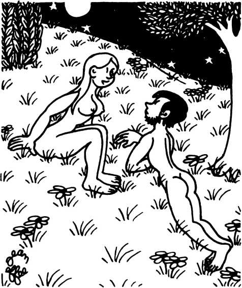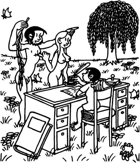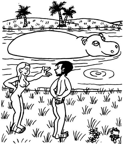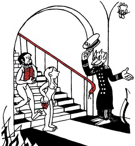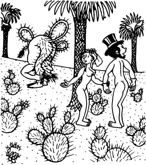 — Суд признает Еву и Адама виновными в первородном грехе и приговаривает их к смерти (условно) и к изгнанию из земного рая.