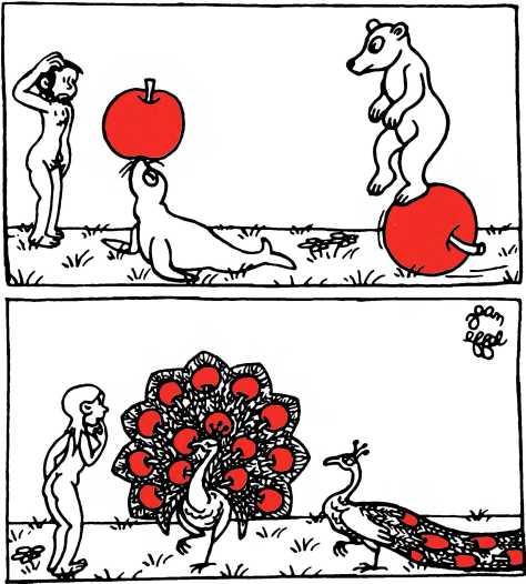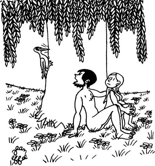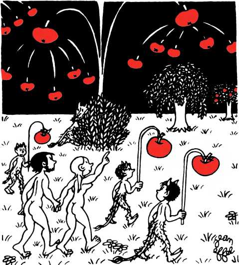 Говоря о теме эффелевского «Сотворения мира», можно, подражая излюбленному автором приему игры слов, сказать, что «от Адама и до наших дней» мастера живописи и литературы разных времен разрабатывали те или иные стороны библейской легенды. Но не для того, разумеется, чтобы пересказать снова и снова одни и те же ситуации. Старая, всем знакомая канва нужна была для того, чтобы выткать на ней новый рассказ о своем времени, о своих современниках. И в этом случае к произведению Жана Эффеля полностью применимы его собственные слова, сказанные по поводу иллюстраторской работы: «Я не люблю иллюстрировать чужие произведения. Всем своим творчеством я иллюстрирую свой век и свой город».