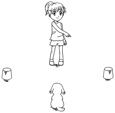Такой процесс совершения логических выводов исключительно важен для понимания собачьего мышления. В экспериментальной игре собаке показывали две чашки, в одной из которых была спрятана игрушка, и псу давали возможность найти ее. Когда исследователь показывал, что одна чашка пуста, животное делало спонтанный вывод о том, что игрушка спрятана в другой чашке. В соответствующей ситуации многие собаки способны делать подобные заключения.