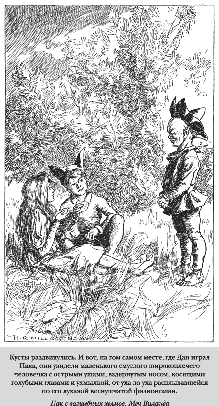 Кусты раздвинулись. И вот, на том самом месте, где Дан играл Пака, они увидели маленького смуглого широкоплечего человечка с острыми ушами, вздернутым носом, косящими голубыми глазами и ухмылкой, от уха до уха расплывавшейся по его лукавой веснушчатой физиономии. Он вдруг посуровел, наморщил лоб, как будто бы застал Буравчика, Рыло и Основу за репетицией «Тисбы и Пирама», и голосом гулким, как мычание недоеной коровы, продекламировал: