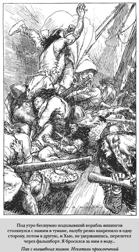 – Клянусь Дубом, Ясенем и Терном! – вскричал Пак, сдергивая с головы свою синюю шапочку. – Вы тоже мне нравитесь. А ну-ка, Дан, посоли мне это печенье, да покруче, и мы съедим его пополам, чтобы развеять все сомнения. Видишь ли, некоторые из наших боятся соли, или подковы над дверью, или рябиновой ветки, или проточной воды, или холодного железа, или колокольного звона. Но я – другое дело, я – Пак, и этим все сказано!