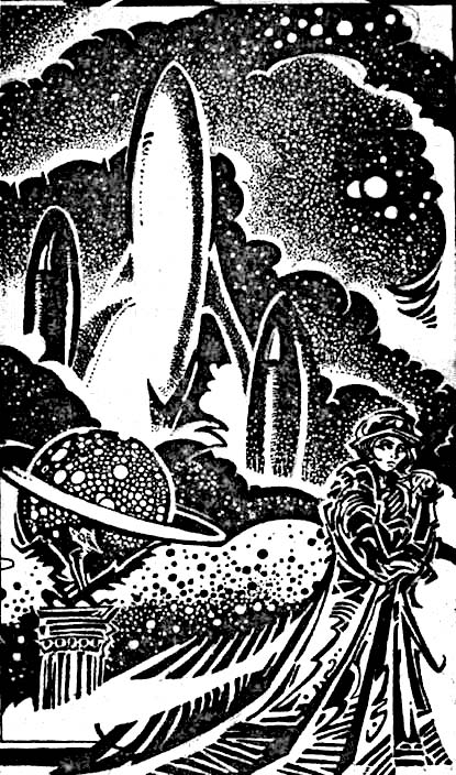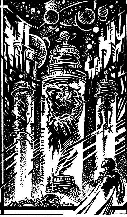 Прежде всего Гил и Амианте посетили ротонду, чтобы испытать суррогат путешествия по инопланетным просторам. Им показали Птичью битву при Слоо на Мадуре, аммиачные бури Файяна, загадочно манящие дали Пяти Миров. Гил непонимающе взирал на странные картины, проплывавшие перед глазами — чересчур незнакомые, чересчур гигантские, порой чересчур дикие для восприятия. Амианте смотрел на ландшафты далеких планет с едва заметной улыбкой иронического сожаления. Таким, как Амианте, дорога в космос была закрыта — никогда ему не удалось бы накопить талоны даже на трехдневную экскурсию по Дамару. Прекрасно это понимая, он, по-видимому, оставил всякую надежду вырваться из Фортинона.