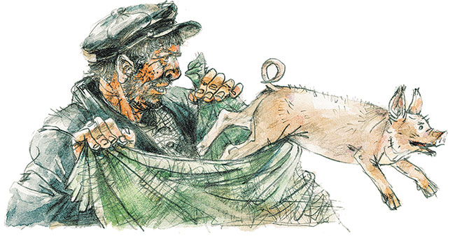 И как только поросенок хотел завизжать, вор быстро завернул его в одеяло и тихонько вышел с ним из сарая.