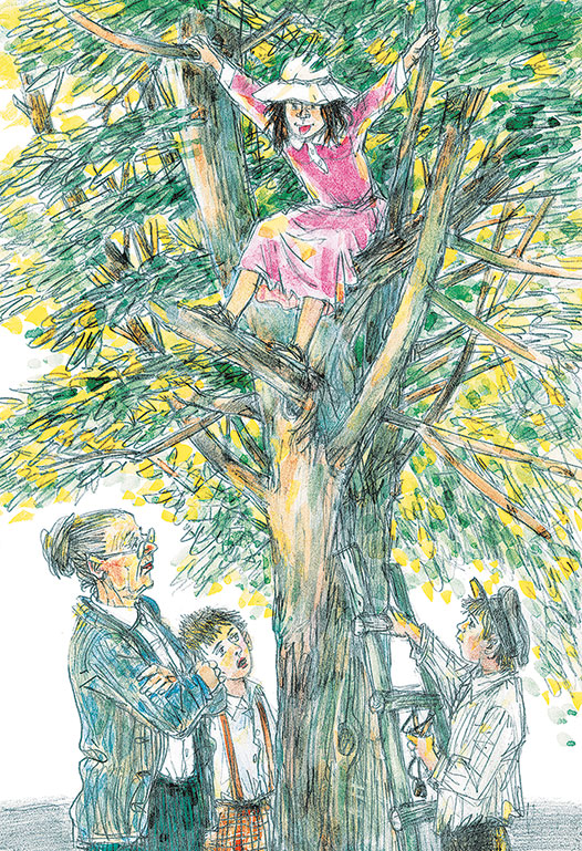 Впереди бежала Степкина собачка Тузик. За ней шел Степка с громадным мешком на голове. За Степкой шла Леля со скакалкой. И за Лелей с тремя рогатками, сачком и удочкой шел я.