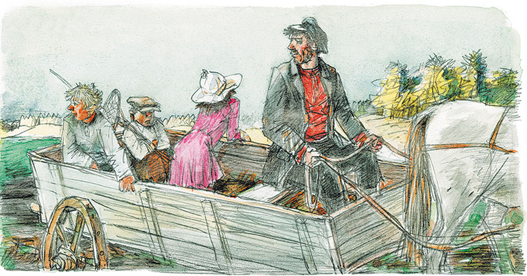 Позади раздался скрип колес. Это какой-то дяденька ехал на телеге.