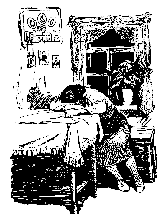 Ночью Анисья долго сидела у кровати Оленьки и рассказывала ей об отце, погибшем на фронте, о том, как эти годы она жила одна в большом пустом доме, как бросила все свои дела, всё свое хозяйство, чтобы поскорее добраться до Ладоги. Оленька заснула, чувствуя у себя на голове ласковую материнскую руку и впервые в жизни подумав о том, что вот и у нее есть мать, которая ее, наверное, очень любит.