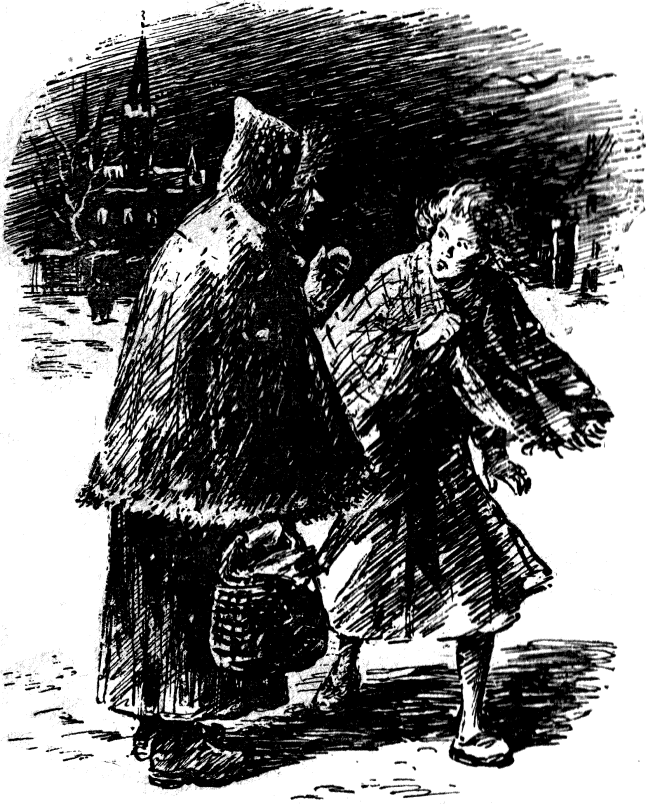 В глубине склада, в углу между двух пустых корзин, нашли груду тряпок, из которой исходили слабые стоны. На снегу виднелись капли крови, а рядом лежал нетронутый кусок сдобной булки, посыпанный сахаром.