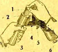 Сделать это совсем нетрудно — достаточно срастить оборванные концы. Для этого на обоих концах осторожно срезают ножом оплетку и резиновую оболочку, а оголенные проволочки кабеля зачищают ножом до блеска. Затем оба конца связывают, как это показано на рисунке, и затягивают в узел. Сверху этот узел дважды покрывают прорезиненной лентой. Такой сросток сразу воскрешает кабель, и он работает. словно с ним ничего не случилось. По прежнему будут нестись донесения и приказы, снова наблюдатели из своего укрытия будут сообщать батареям, где находится цель, и точно указывать артиллеристам, куда направлять по врагу снаряды.