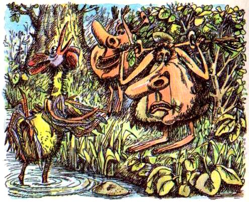 Вдруг, совершенно неожиданно, на берегу раздался страшно громкий крик, и все чепухоносики вскочили, словно их ужалили очень дикие осы.