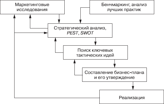10. Регулярно или по мере выполнения проектов происходит возврат на этап углубленного анализа компонентов маркетинга и/или на этап стратегического анализа.