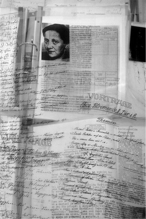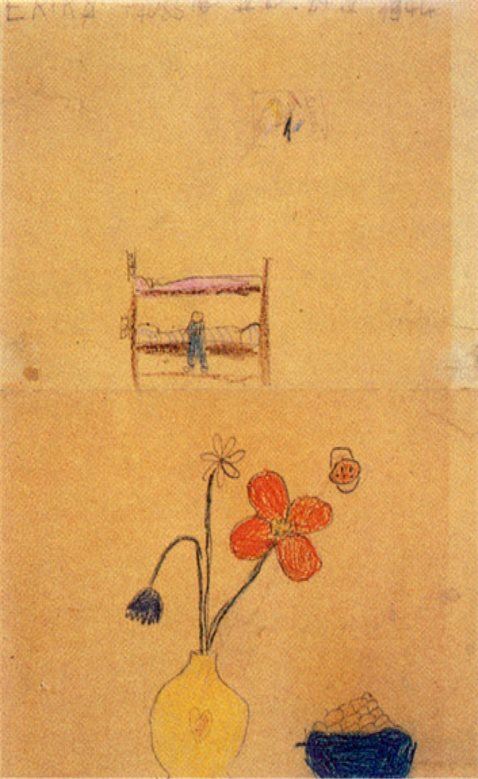 3.3.1997. Иерусалим. Компьютер перед окном в цветущий сад. Справа на стене – пастель Фридл, вид сквозь деревья, букет полевых цветов Анны Сладковой, подруги Фридл, – срочно написать в Наход, как она там. Слева – шероховатый лист в форме кочерги, в Израильском музее мы осваивали производство бумаги старинным китайским способом, – на нем желтая звезда на ржавой булавке – подарок брата художника Дольфи Аузенберга, убитого в возрасте 30 лет в Освенциме. Рядом обнаженная на коленях – старческий рисунок Вилли Гроага, директора терезинского детского дома девочек L-410, где жила и работала Фридл, того самого, который после войны вывез из Терезина в Прагу два чемодана детских рисунков. Около обнаженной – плакат с выставки в Яд Вашем; акварельное, едва намеченное лицо ребенка («Фридл без спросу взяла у меня альбом, прошлась по бумаге кисточкой, и все…») обрамлено меленькими фотографиями детских лиц. Слева, на расстоянии протянутой руки, железные стеллажи с книгами от Баухауза до Терезина и толстые темные папки с надписями на корешках: «Баухауз-эксперимент», «Фридл-Баухауз», «Вилли Гроаг», «Дети», «Транспортные списки», «Культурная жизнь», «Неизвестные художники», «Театр», «Швенк-Кабаре», «Лекции», «Дневники», «Детские журналы», «Стихи и проза», «Эдит Крамер», «Виктор Ульман», «Музыка», «Письма», «Цветы любви 42 года», «Эстетика и хаос»…