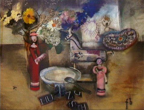 Результатом каждого последующего шага у Фридл является некое произведение, несущее в себе черты прошлой и будущей работы. Нигде не поставлена точка, все через запятую. По отдельно взятой работе трудно судить о диапазоне ее искусства. Неструктурируемая структура? Саму ее ничто не удовлетворяет, она переписывает картину по десять раз, зная, что в конце концов загубит ее, но отступиться не может, вечером дает себе обещание не притрагиваться, утром хватается за кисть – снова не то! Что делать тому, кто каждый день живет наново, тому, у кого не происходит накопления опыта, тому, для кого обыденность является волшебством? Открытая каждому встречному и замкнутая сама в себе – известная характеристика, я и сама такая, может, потому и брежу Фридл?