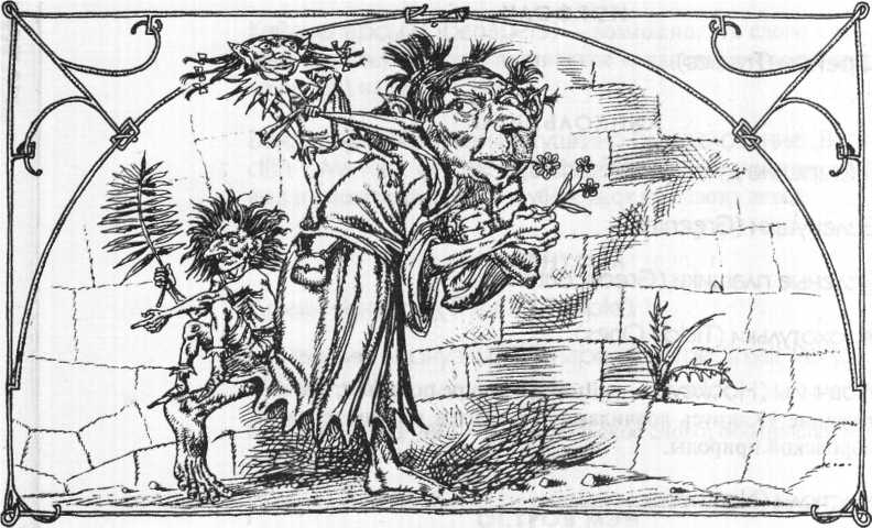 Феи большие и Малые. Феи бывают добрыми и злыми, красивыми и безобразными, величавыми и забавными, но больше всего они отличаются размером. Иногда они сами могут изменять его, то невероятно увеличиваясь, то, наоборот, превращаясь в карликов, но так происходит не всегда. Некоторые малы от природы, эти миниатюрные, слабые создания относятся к классу крохотных фей. Оксфордский словарь, давая феям следующее определение: «существа крохотного размера», относит их к маленьким эльфам, которых так любили в Англии в эпоху Якова I, и это действительно один из элементов устной традиции. К маленьким средневековым феям относятся портуны, описанные Гервазием Тильсберий-ским, которые были размером с палец, или датский тролль, появляющийся в балладе «Элайн из Вилленокора»: