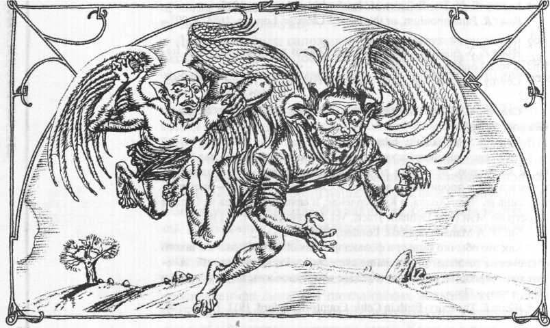 Между фантастическим и осязаемым мирами нет как таковой четкой грани. Цезарий Гейстербахский (почил в 1240 году) рассказывает в книге «Диалоги о видениях и чудесах» истории на все случаи жизни и смерти: и про покойников, и про демонов, про лжецов, даже о Чистилище. В книге Цеза-рия, занимавшегося обучением послушников монастыря, бытовая сторона событий приправлена религиозной моралью, что придает его рассказам комичный характер: «ПОСЛУШНИК: Если демоны, приняв человеческий облик, могут сходиться с людьми, а тому есть немало примеров, то мне интересно, могут ли женщины понести и родить от подобного совокупления?" МОНАХ: По этому поводу я не могу рассказать тебе ничего нового, лучше обращусь к тому, что я прочитал в книгах по древней истории. Когда, как рассказывается в деяниях готов, их племя перекочевало из Азии в Европу, готов сопровождали женщины уродливые, а потому готы оставили их, опасаясь, как бы те не народили им безобразных детей и тем самым не испортили благородную готскую породу. И вот когда женщины, прогнанные из лагеря, скитались по лесу, к ним присоединились демоны-инкубы, от которых они и произвели на свет дочерей и сыновей. Вот так появилось могущественное племя гуннов. В книгах можно прочитать о том, что Мерлин — пророк Британии — был рожден от демона-инкуба и женщины-монахини. Да и короли, что поныне правят в той же самой Британии, которая теперь называется Англией, как говорят, ведут свое происхождение от матери-призрака. А ведь Мерлин был человеком разумным и христианской веры, он предсказал о будущем много такого, что на сегодняшний день уже исполнилось. ПОСЛУШНИК: Но если человек может быть зачат и появиться на свет только при смешении семени обоих полов, то как же можно называть людьми тех, кто наполовину от человека, а наполовину от демона ведет свое плотское происхождение? Разве воскреснет в день Страшного суда тот, кто не наделен истинной человеческой природой? МОНАХ: Поведаю тебе то, что сказал мне на сей счет один ученый муж, а он объяснил мне, что демоны собирают человеческое семя, которое проливается противоестественным образом, и создают себе из него тела, и так позволяют дотрагиваться до себя людям и открываются их взору. Из мужского получается мужской образ, а из женского — женский, а потому, как считают ученые мужи, те, кто рождается от подобного совокупления, в полной мере обладают человеческой природой и смогут восстать, как настоящие люди, в день Страшного суда» («Диалоги о чудесах» III, 12). А вот история о подземной обители короля Артура: «В те самые времена, когда император Генрих покорил Сицилию, в церкви в Палермо деканом был один человек, по происхождению, как я полагаю, немец. И вот как-то раз, когда пропал его лучший скакун, он отправил своего слугу на розыски. И тому навстречу вышел один старик и говорит: „Куда идешь, чего ищешь?" А тот отвечает, что, дескать, отправился искать коня своего господина. Человек продолжил: „Знаю я, где он". — „И где же?" — „На горе Этна, у моего господина, короля Артура. Эта гора извергает пламя, подобно вулкану". Слуга оторопел при этих словах, а тот добавил: „Скажи своему господину, что по прошествии сорока дней и ему предстоит явиться к этому блистательному двору. А коли не скажешь, понесешь тяжелую кару". Слуга возвратился домой и со страхом поведал господину обо всем, что слы