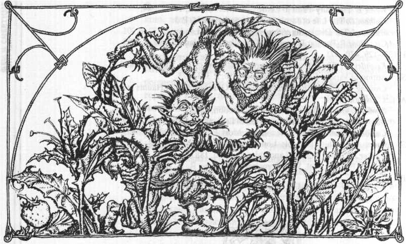 (обратно)Bowker J. Goblin Tales of Lancashire. London, 1883. Феи Баукера, ведущие мудреные разговоры за столами из мухоморов, очень напоминают литературных фей эпохи короля Якова, кажется даже, что автор позаимствовал подробности из «Нимфидии» Драйтона или другой поэмы того же толка.
