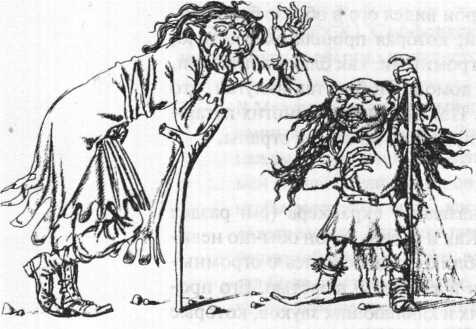 (обратно)County Folklore, vol. II: North Riding of Yorkshire, York and the Ainsty, collected and edited by Mrs Gutch, 1899. Миссис Гатч возводит название «хобтраст» к Hob-i-t'-hurst, то есть Хоб-из-под-Бугра, однако Джиллиан Эдварде в книге «Хобгоблин и Душка Пак» доказывает, что это название, скорее всего, восходит к средневековому Hob Thurs, что, в свою очередь, происходит от староанглийского thyrs или thurs — так англосаксы называли великанов языческих времен, а их потомки в Средние века пользовались этим словом, наряду со словом «пэк», для обозначения дьявола. Если это и в самом деле так, то забавная приставка «хоб» хотя бы отчасти смягчает резкость основного значения. Миссис Гатч и Уильям Хендерсон называют всех без исключения хобов хобменами. Хобмены столь же многочисленны, хотя и вполовину не столь зловредны, как великое племя фо-а, обитающее в Горной Шотландии.