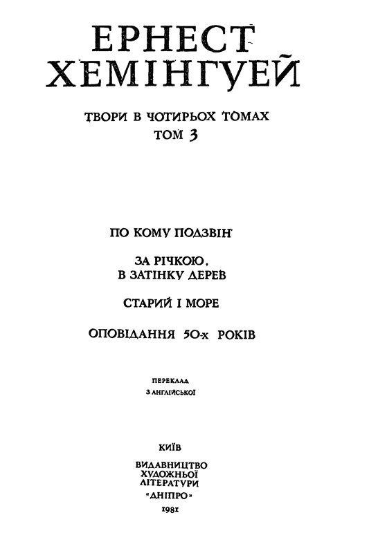 Молодого — його звали Роберт Джордан — мучив голод, і на душі в нього було тривожно. Йому не раз доводилося терпіти голод, але тривожився він не часто, бо нехтував усякою небезпекою, а до того ж із власного досвіду знав, як легко в цій країні пересуватися у ворожому тилу. З добрим провідником це було так само легко, як пробиратися через лінію фронту. Важко тільки від думок про те, що буде з тобою, як тебе впіймають, — і від необхідності вирішувати, кому можна довіряти. Людям, з якими ти робиш спільну справу, треба довіряти — от і вирішуй, хто вартий довір'я. Але й це не бентежило його. Було ще багато чого іншого.