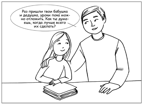 Это мы и объясняем родителям, жалующимся на отсутствие взаимопонимания с детьми. И нередко слышим в ответ: «Что ж, звучит разумно. В таком приучении к дисциплине есть и уважение, и любовь, и понятно, что моему ребенку это могло бы подойти. Но я, между прочим, работаю! У меня есть еще дети и куча дел! У одной фортепиано, у другой хореография, у третьего футбол, а еще ужин надо приготовить! Да мне дух перевести некогда! Где же, спрашивается, найти время на эмоциональный контакт и перенаправление?»